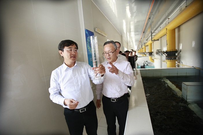 林撫生參觀考察了北區(qū)污水處理廠的全流程生產(chǎn)線,仔細查看了沉砂池、生化池、紫外消毒池和中央控制室等生產(chǎn)環(huán)節(jié),詳細詢問了污水來源、生產(chǎn)工藝和生產(chǎn)能力等問題。當聽到處理廠日處理規(guī)模達到15萬噸時,林撫生為此“點贊”:這是首都國企在華東地區(qū)的一張綠色名片,我們要倍加珍惜來之不易的發(fā)展成果。