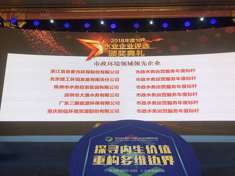 3月23日,2019(第十七屆)水業(yè)戰(zhàn)略論壇上,2018年度(第十六屆)水業(yè)企業(yè)評(píng)